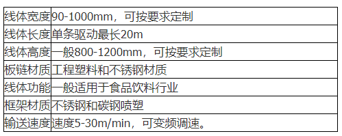 食品级板链输送设备一般由不锈钢制作侧帮,采用专用塑料链板和不锈钢链板等组成,主要输送方式:水平输送机、转弯输送机、爬坡输送机等。链板宽度有: